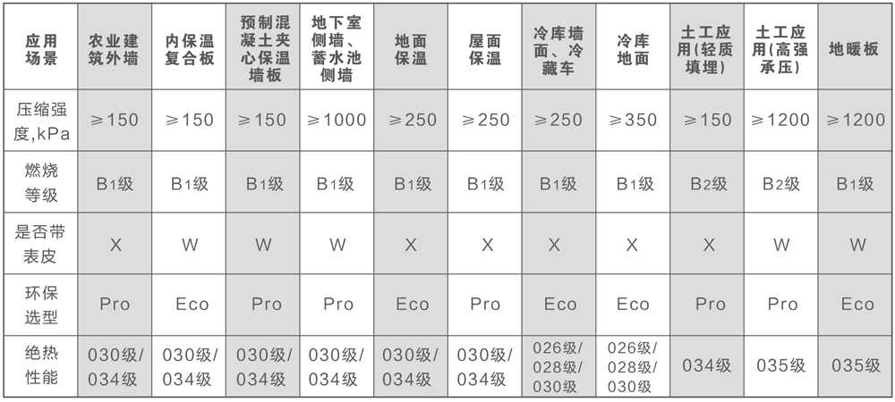 伯克頓擠塑板部分應(yīng)用領(lǐng)域選型推薦表